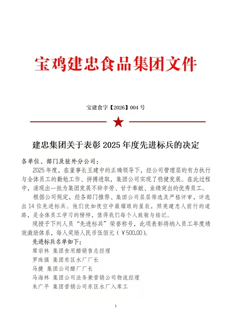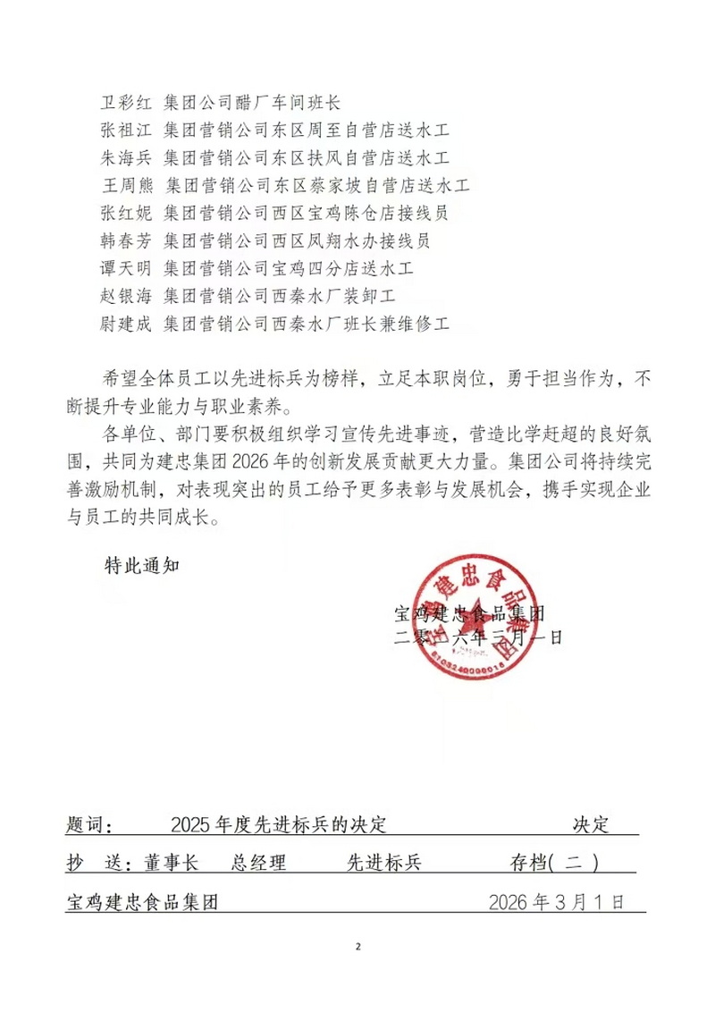 建忠集团关于表彰2025年度先进标兵的决定